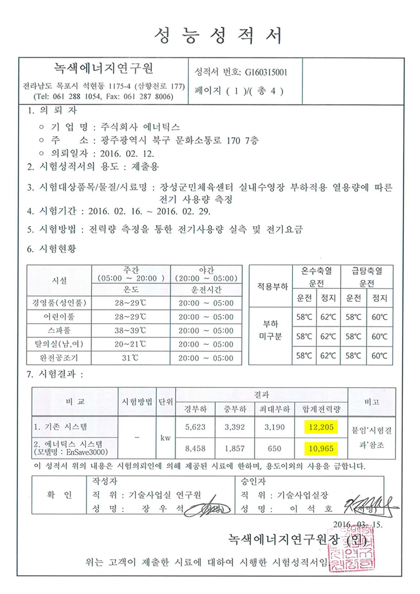 타 수영장(히트펌프 사용) 대비 최소 10%이상 유지비용 절감